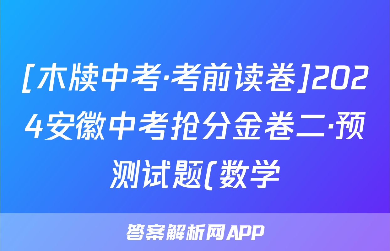[木牍中考·考前读卷]2024安徽中考抢分金卷二·预测试题(数学)正在持续更新,目前2026届黄冈八模答案网为大家整理了相关试题及答案,供大家查缺补漏,高效提升成绩。