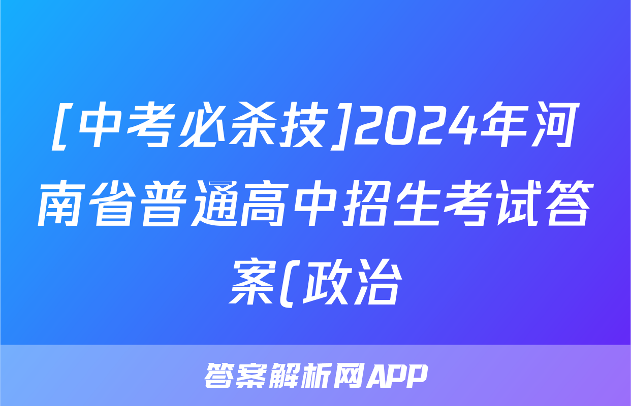 [中考必杀技]2024年河南省普通高中招生考试答案(政治)正在持续更新,目前2026届黄冈八模答案网为大家整理了相关试题及答案,供大家查缺补漏,高效提升成绩。