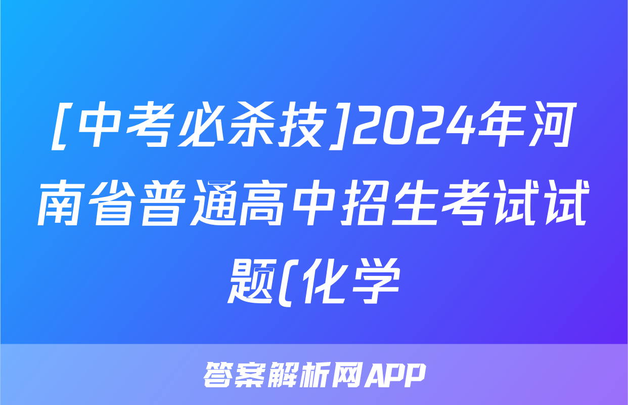 [中考必杀技]2024年河南省普通高中招生考试试题(化学)正在持续更新,目前2026届黄冈八模答案网为大家整理了相关试题及答案,供大家查缺补漏,高效提升成绩。