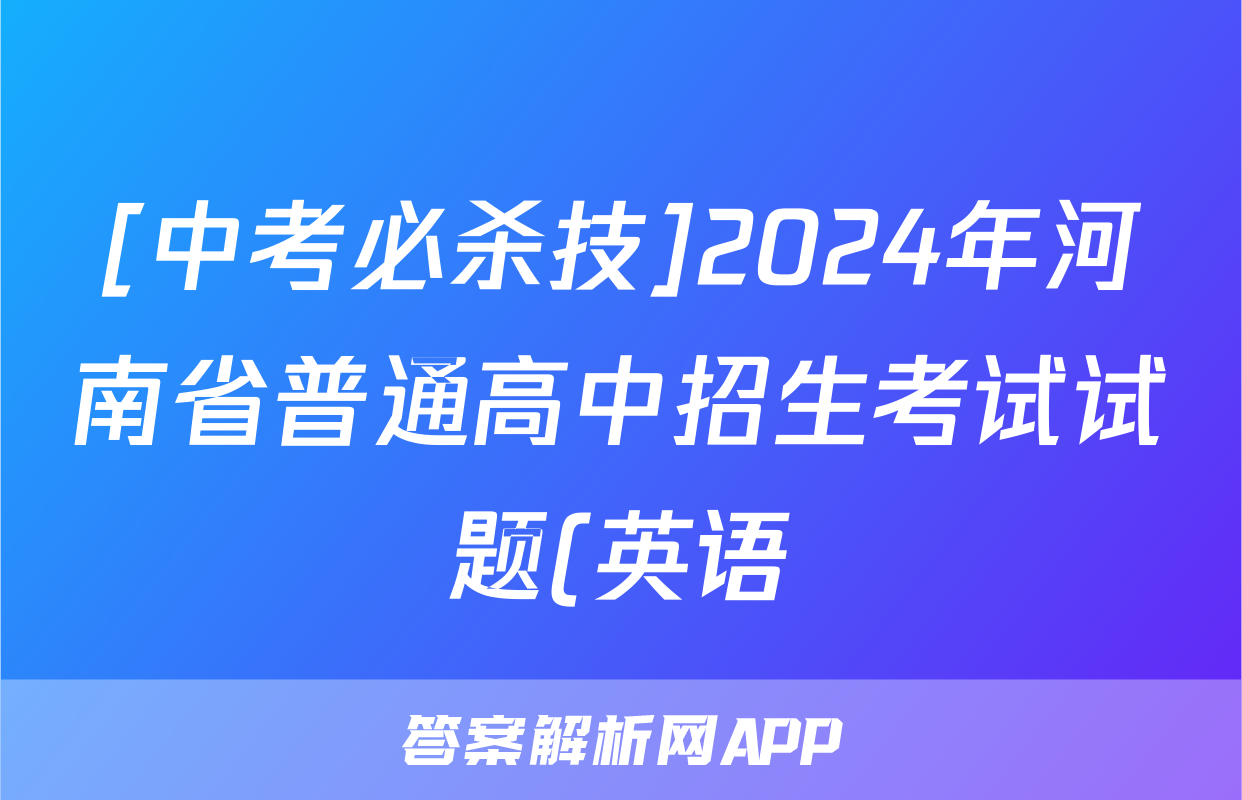 [中考必杀技]2024年河南省普通高中招生考试试题(英语)正在持续更新,目前2026届黄冈八模答案网为大家整理了相关试题及答案,供大家查缺补漏,高效提升成绩。
