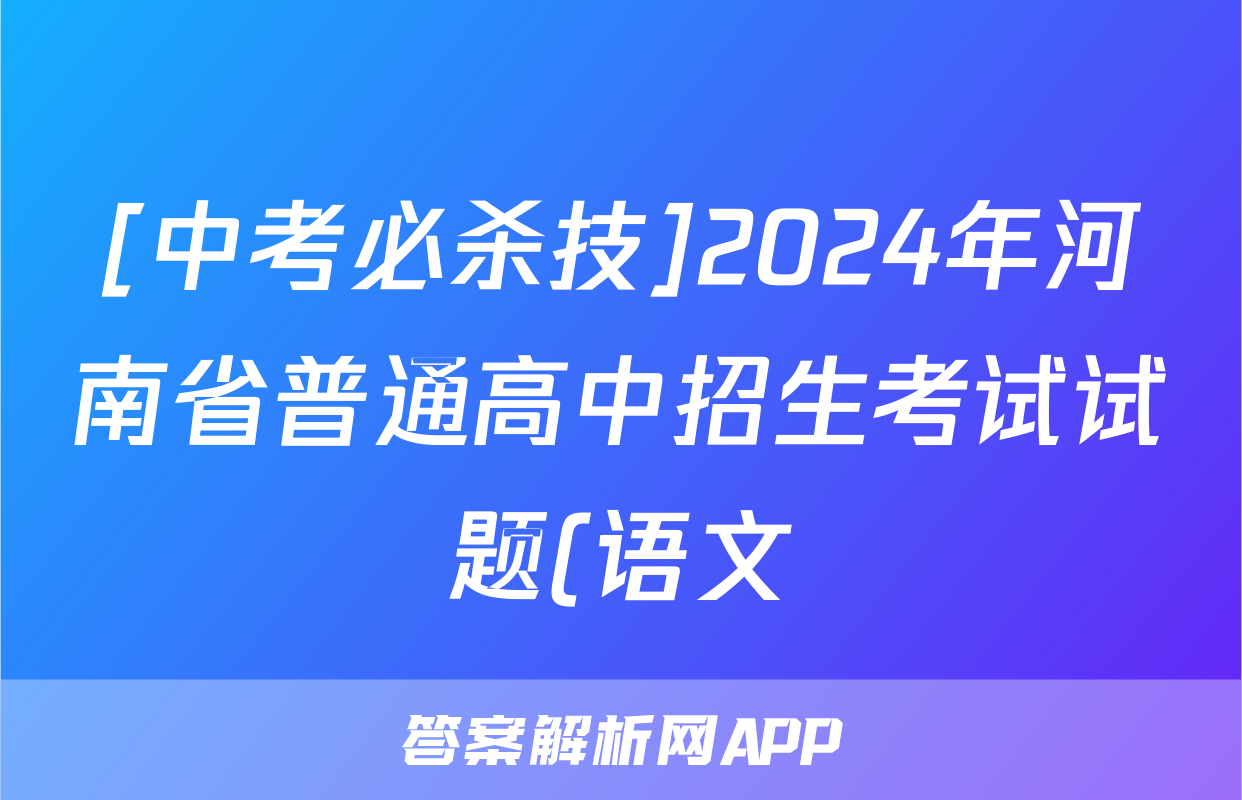 [中考必杀技]2024年河南省普通高中招生考试试题(语文)正在持续更新,目前2026届黄冈八模答案网为大家整理了相关试题及答案,供大家查缺补漏,高效提升成绩。