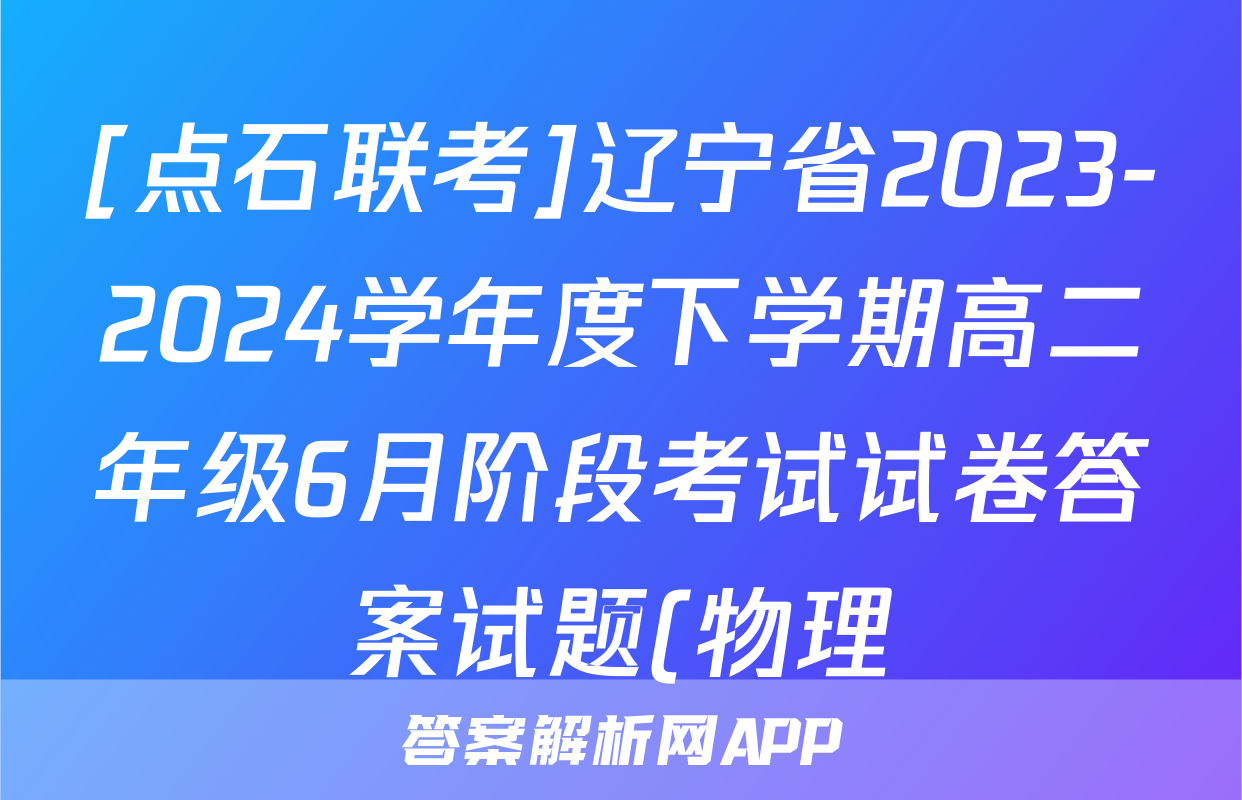 [点石联考]辽宁省2023-2024学年度下学期高二年级6月阶段考试试卷答案试题(物理)正在持续更新,目前2026届黄冈八模答案网为大家整理了相关试题及答案,供大家查缺补漏,高效提升成绩。