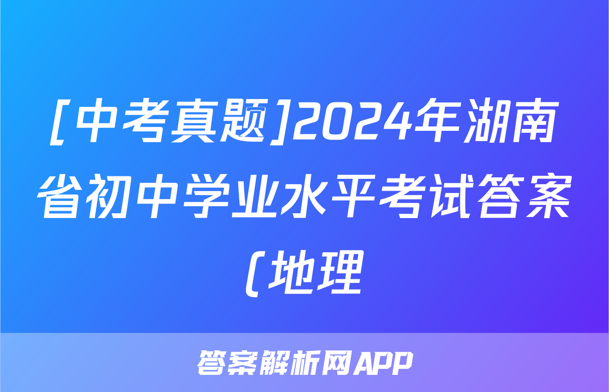 [中考真题]2024年湖南省初中学业水平考试答案(地理)正在持续更新,目前2026届黄冈八模答案网为大家整理了相关试题及答案,供大家查缺补漏,高效提升成绩。