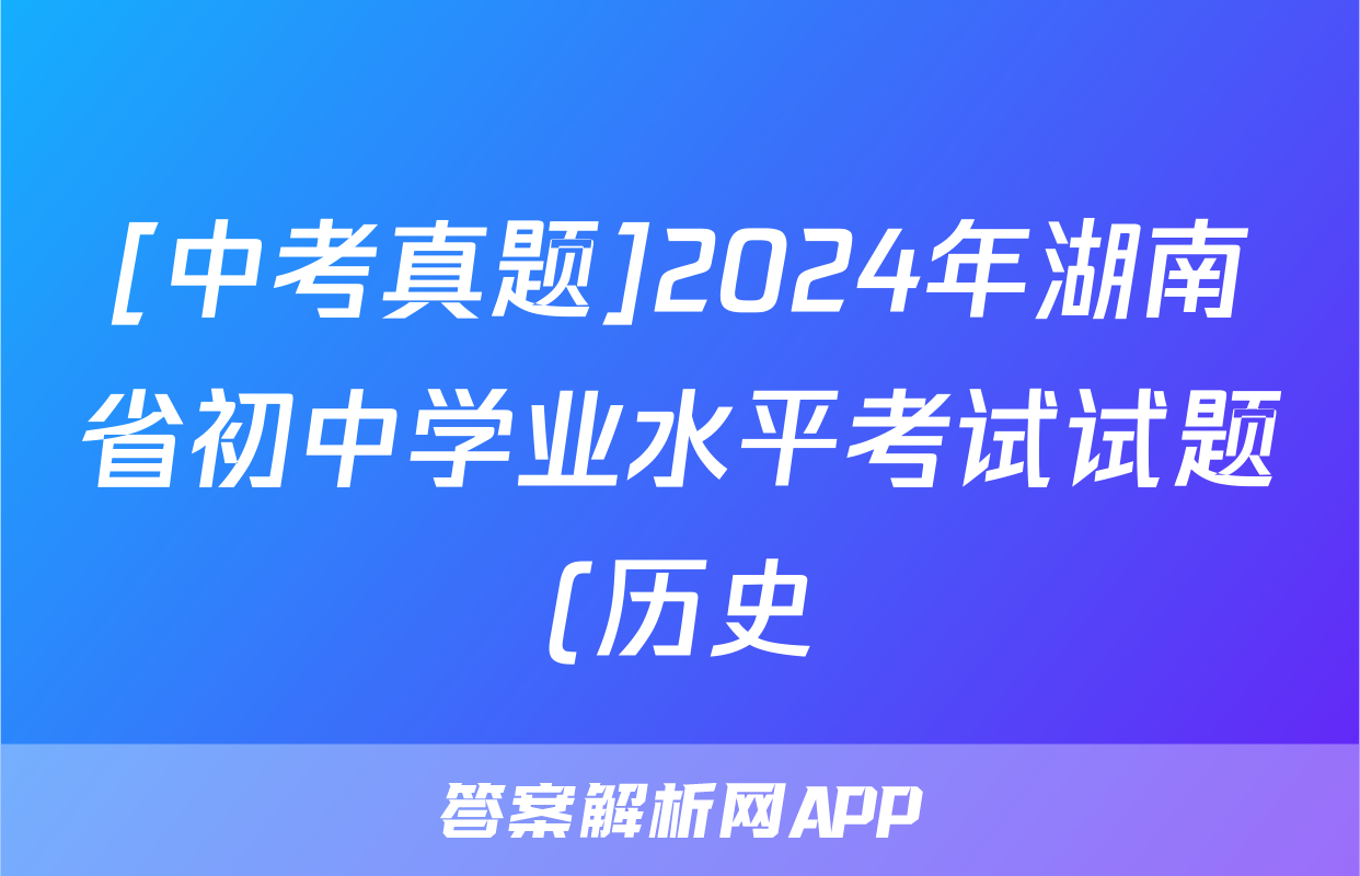 [中考真题]2024年湖南省初中学业水平考试试题(历史)正在持续更新,目前2026届黄冈八模答案网为大家整理了相关试题及答案,供大家查缺补漏,高效提升成绩。