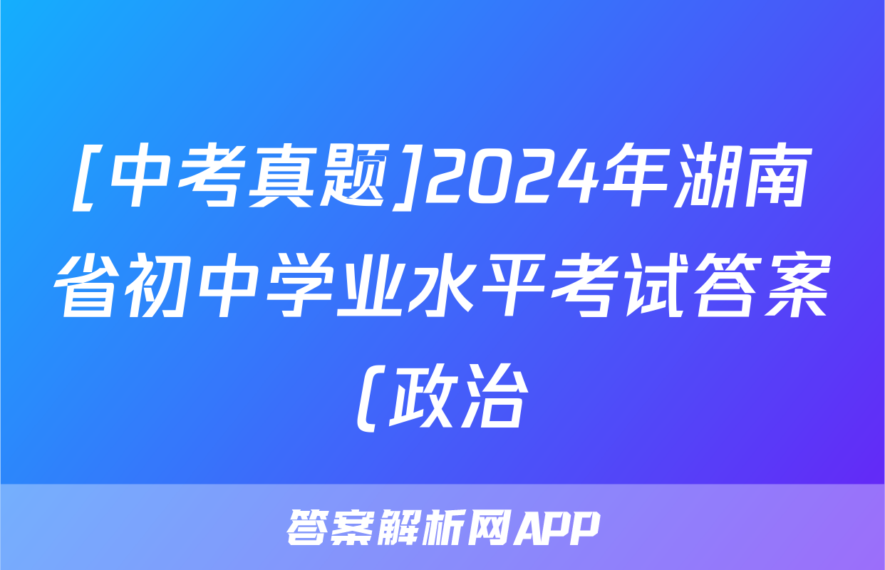 [中考真题]2024年湖南省初中学业水平考试答案(政治)正在持续更新,目前2026届黄冈八模答案网为大家整理了相关试题及答案,供大家查缺补漏,高效提升成绩。