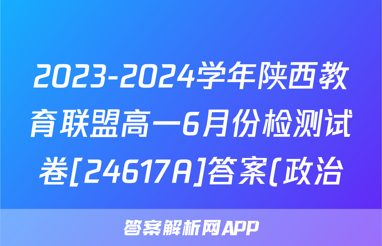 2023-2024学年陕西教育联盟高一6月份检测试卷[24617A]答案(政治)