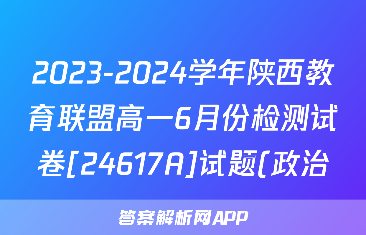 2023-2024学年陕西教育联盟高一6月份检测试卷[24617A]试题(政治)正在持续更新,目前2026届黄冈八模答案网为大家整理了相关试题及答案,供大家查缺补漏,高效提升成绩。