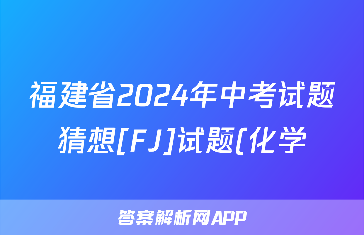 福建省2024年中考试题猜想[FJ]试题(化学)正在持续更新,目前2026届黄冈八模答案网为大家整理了相关试题及答案,供大家查缺补漏,高效提升成绩。