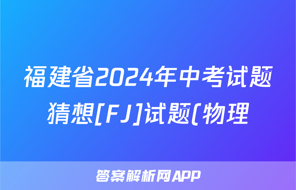 福建省2024年中考试题猜想[FJ]试题(物理)正在持续更新,目前2026届黄冈八模答案网为大家整理了相关试题及答案,供大家查缺补漏,高效提升成绩。