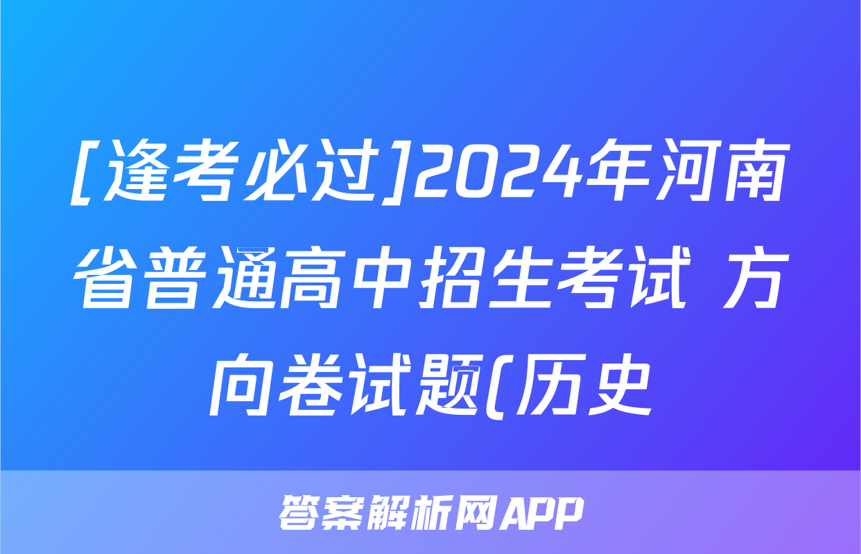 [逢考必过]2024年河南省普通高中招生考试 方向卷试题(历史)正在持续更新,目前2026届黄冈八模答案网为大家整理了相关试题及答案,供大家查缺补漏,高效提升成绩。