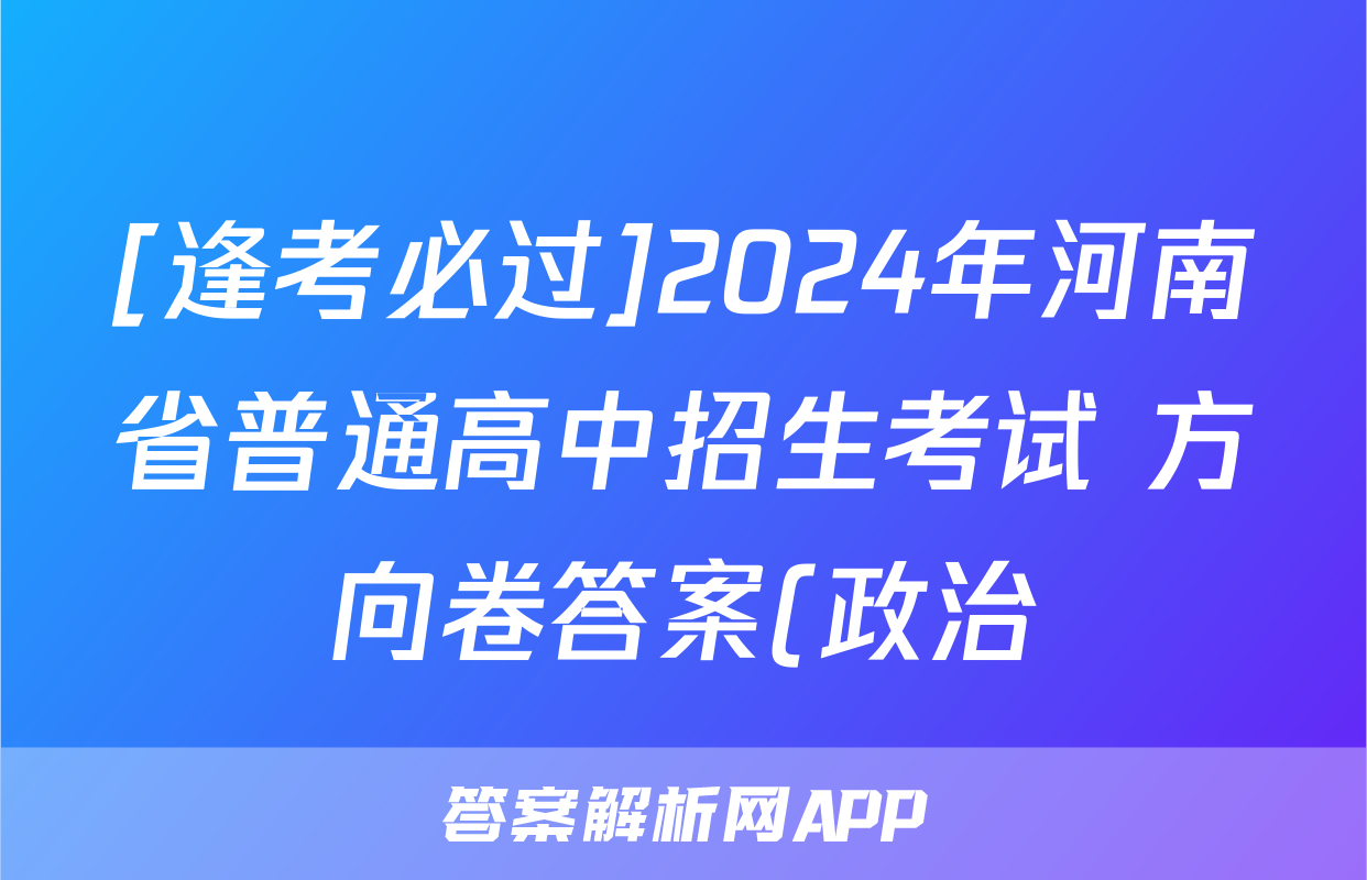 [逢考必过]2024年河南省普通高中招生考试 方向卷答案(政治)正在持续更新,目前2026届黄冈八模答案网为大家整理了相关试题及答案,供大家查缺补漏,高效提升成绩。