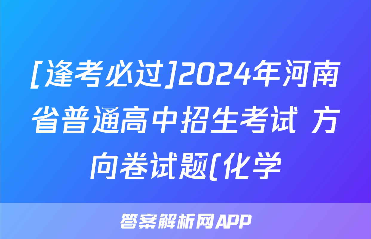 [逢考必过]2024年河南省普通高中招生考试 方向卷试题(化学)正在持续更新,目前2026届黄冈八模答案网为大家整理了相关试题及答案,供大家查缺补漏,高效提升成绩。
