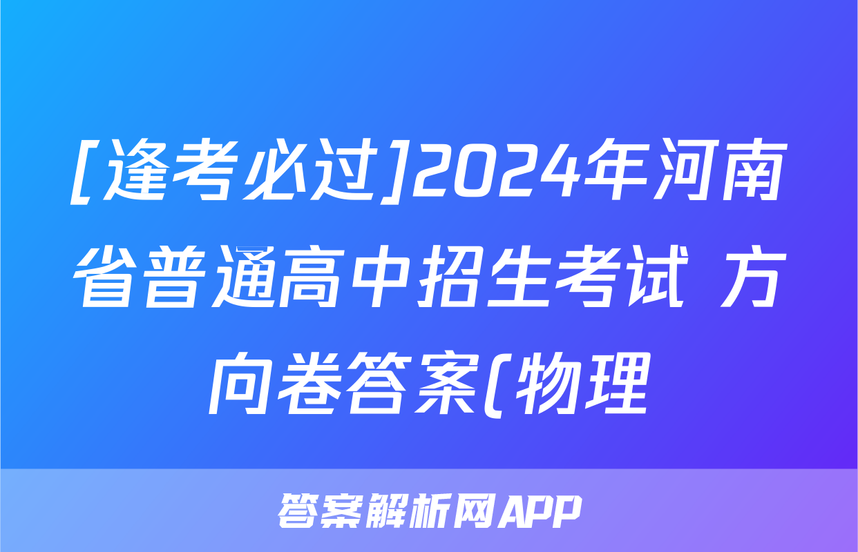 [逢考必过]2024年河南省普通高中招生考试 方向卷答案(物理)正在持续更新,目前2026届黄冈八模答案网为大家整理了相关试题及答案,供大家查缺补漏,高效提升成绩。