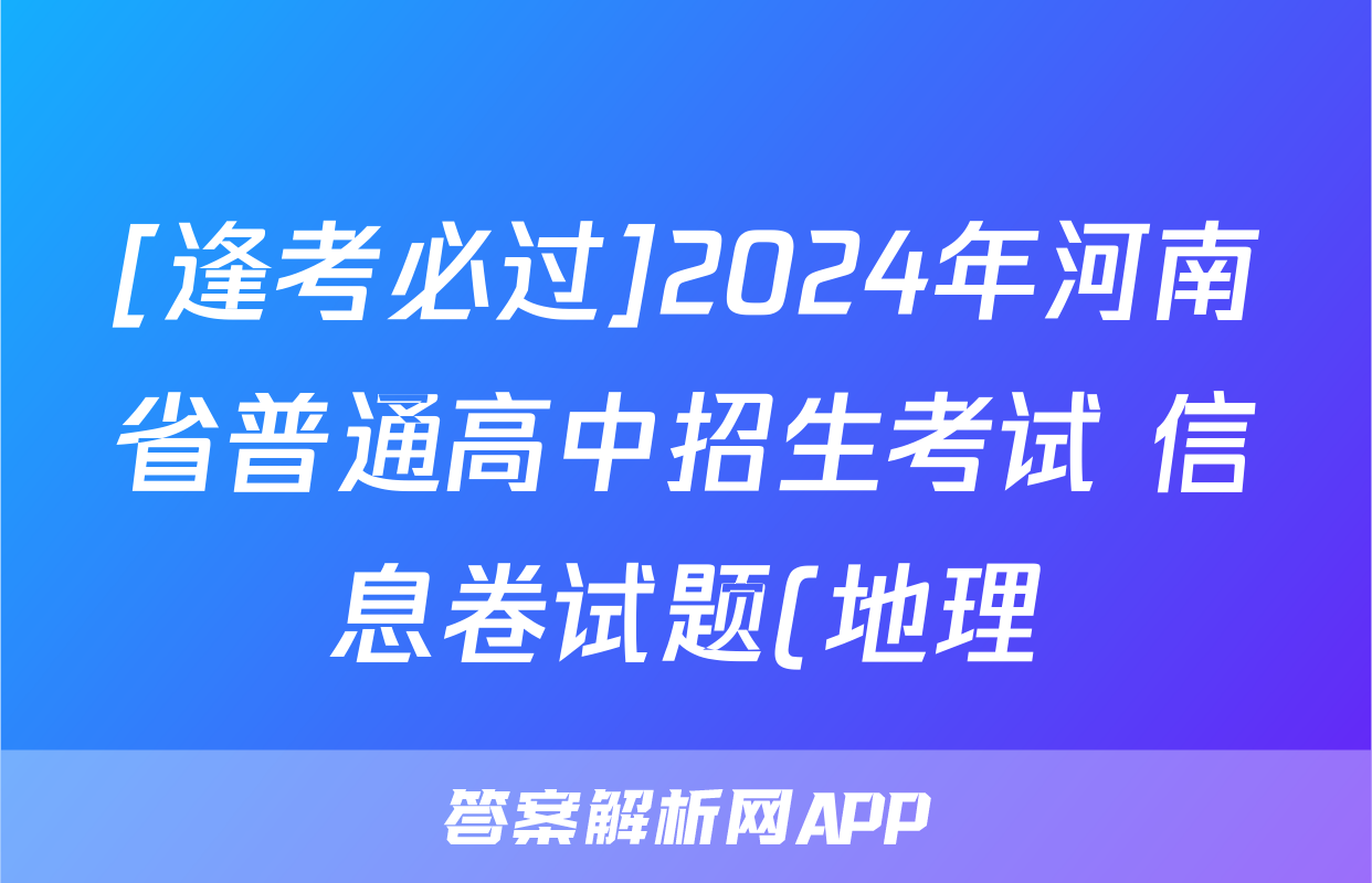 [逢考必过]2024年河南省普通高中招生考试 信息卷试题(地理)