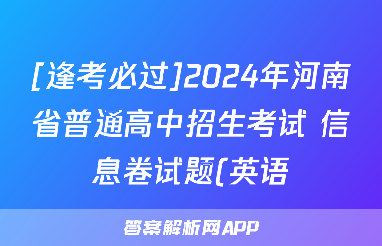 [逢考必过]2024年河南省普通高中招生考试 信息卷试题(英语)正在持续更新,目前2026届黄冈八模答案网为大家整理了相关试题及答案,供大家查缺补漏,高效提升成绩。