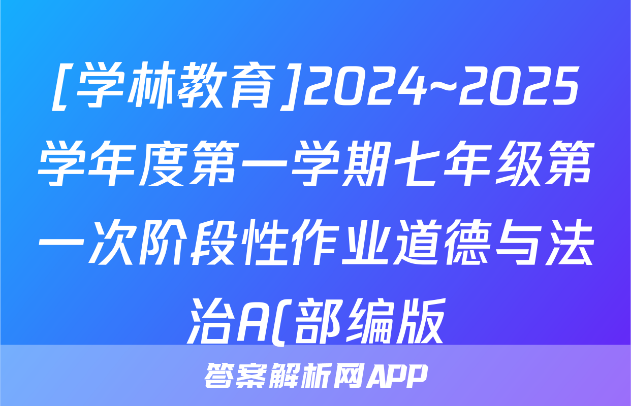 [学林教育]2024~2025学年度第一学期七年级第一次阶段性作业道德与法治A(部编版)答案正在持续更新,目前2026届黄冈八模答案网为大家整理了相关试题及答案,供大家查缺补漏,高效提升成绩。