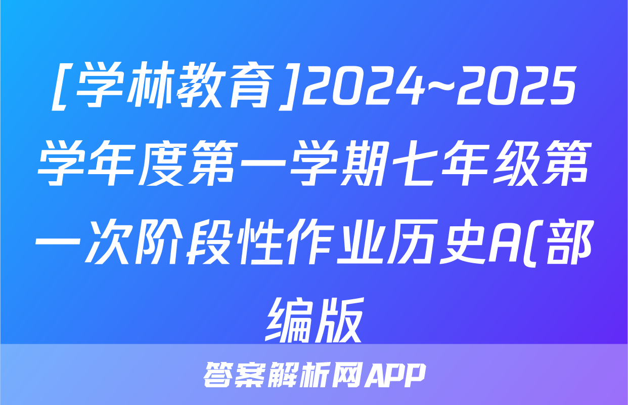 [学林教育]2024~2025学年度第一学期七年级第一次阶段性作业历史A(部编版)试题正在持续更新,目前2026届黄冈八模答案网为大家整理了相关试题及答案,供大家查缺补漏,高效提升成绩。