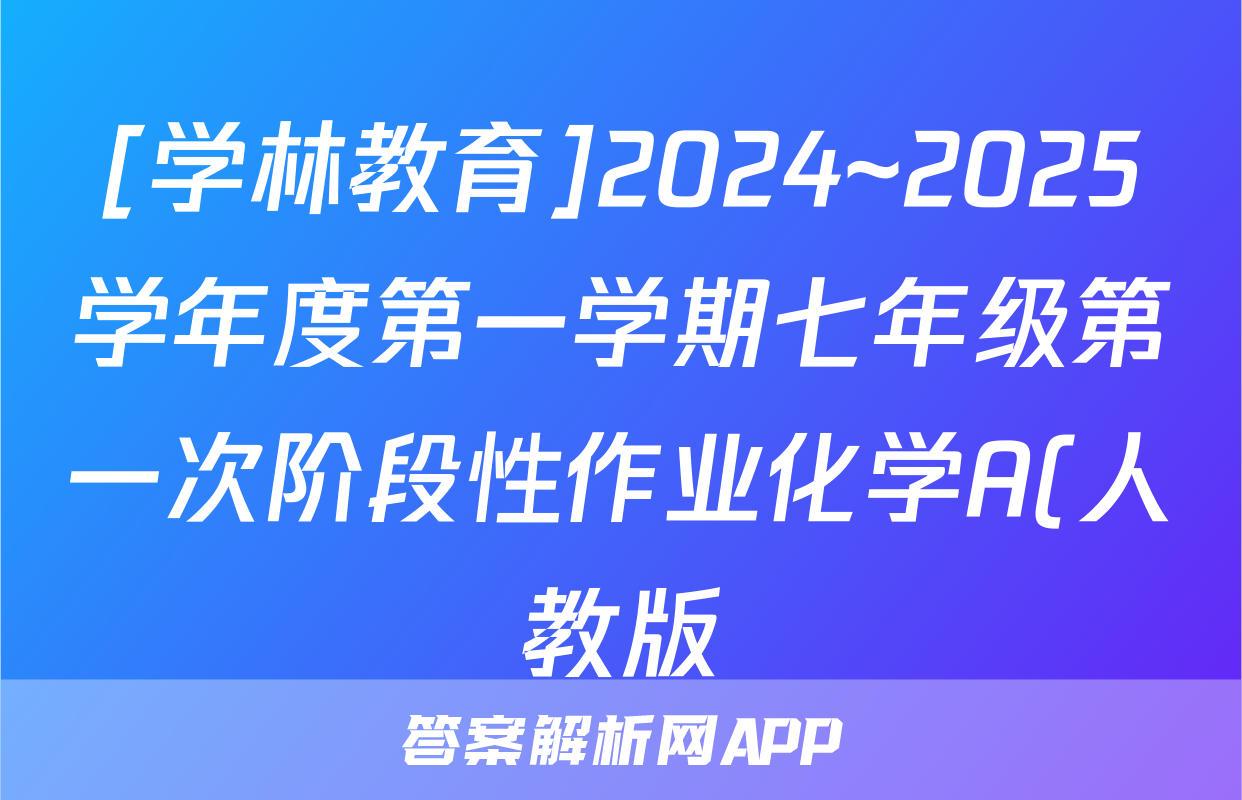 [学林教育]2024~2025学年度第一学期七年级第一次阶段性作业化学A(人教版)试题正在持续更新,目前2026届黄冈八模答案网为大家整理了相关试题及答案,供大家查缺补漏,高效提升成绩。