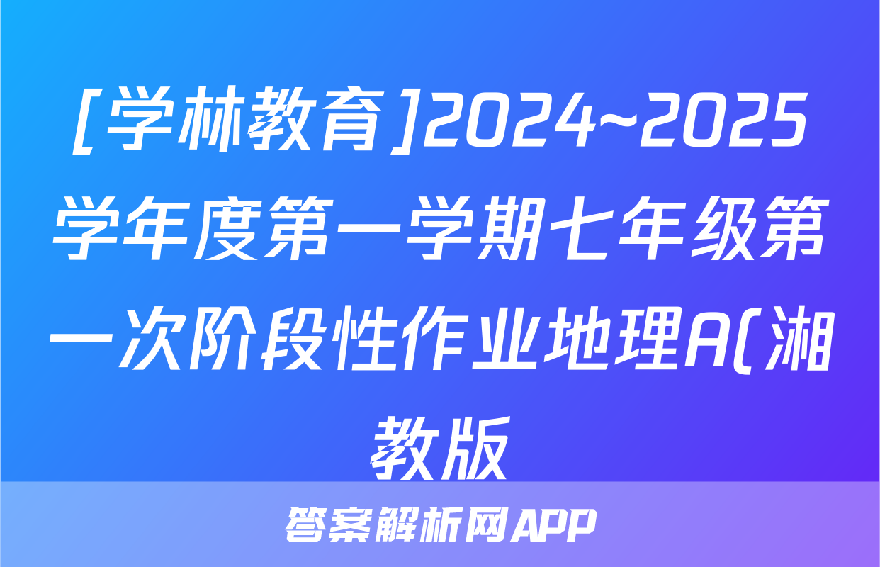 [学林教育]2024~2025学年度第一学期七年级第一次阶段性作业地理A(湘教版)试题正在持续更新,目前2026届黄冈八模答案网为大家整理了相关试题及答案,供大家查缺补漏,高效提升成绩。