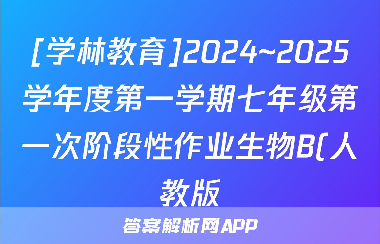 [学林教育]2024~2025学年度第一学期七年级第一次阶段性作业生物B(人教版)试题正在持续更新,目前2026届黄冈八模答案网为大家整理了相关试题及答案,供大家查缺补漏,高效提升成绩。