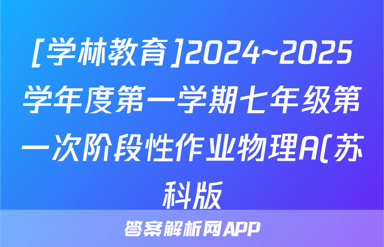 [学林教育]2024~2025学年度第一学期七年级第一次阶段性作业物理A(苏科版)答案正在持续更新,目前2026届黄冈八模答案网为大家整理了相关试题及答案,供大家查缺补漏,高效提升成绩。