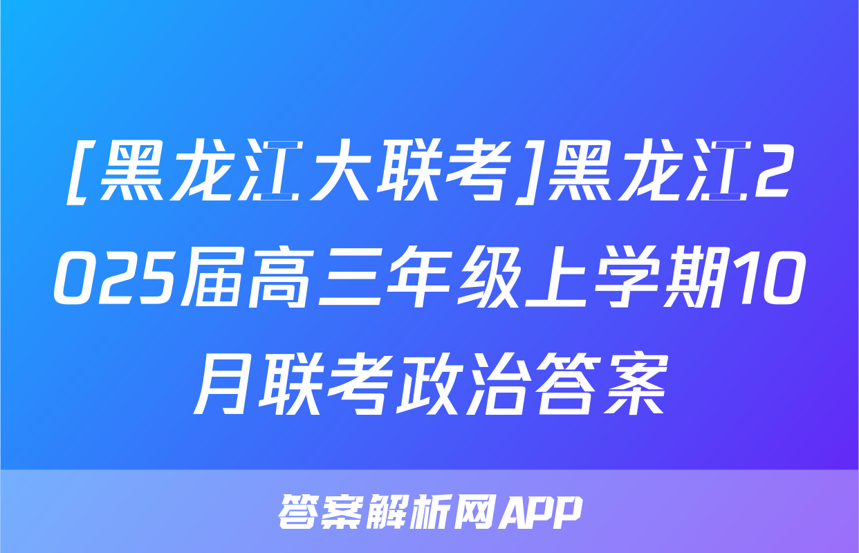 [黑龙江大联考]黑龙江2025届高三年级上学期10月联考政治答案正在持续更新,目前2026届黄冈八模答案网为大家整理了相关试题及答案,供大家查缺补漏,高效提升成绩。
