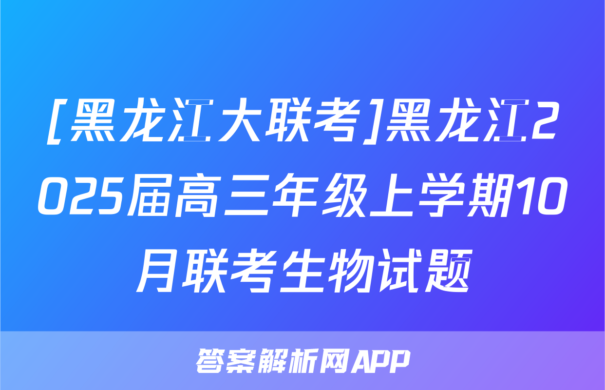[黑龙江大联考]黑龙江2025届高三年级上学期10月联考生物试题正在持续更新,目前2026届黄冈八模答案网为大家整理了相关试题及答案,供大家查缺补漏,高效提升成绩。