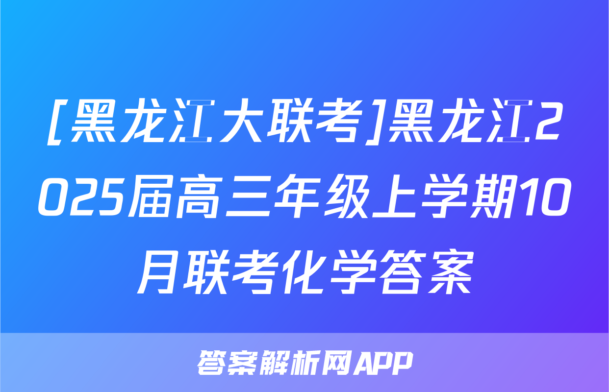 [黑龙江大联考]黑龙江2025届高三年级上学期10月联考化学答案正在持续更新,目前2026届黄冈八模答案网为大家整理了相关试题及答案,供大家查缺补漏,高效提升成绩。