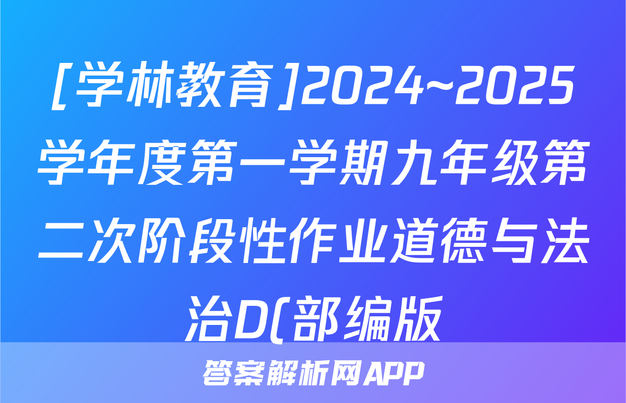 [学林教育]2024~2025学年度第一学期九年级第二次阶段性作业道德与法治D(部编版)语文C(部编版)答案正在持续更新,目前2026届黄冈八模答案网为大家整理了相关试题及答案,供大家查缺补漏,高效提升成绩。