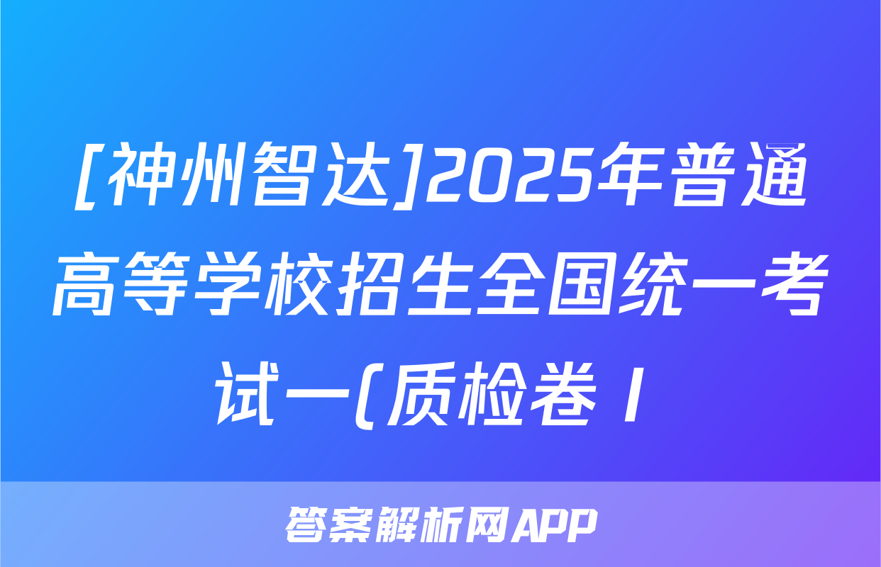 [神州智达]2025年普通高等学校招生全国统一考试一(质检卷Ⅰ)语文试题正在持续更新,目前2026届黄冈八模答案网为大家整理了相关试题及答案,供大家查缺补漏,高效提升成绩。